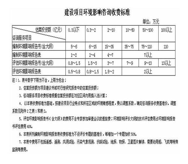 确定如是报告书、报告表,接下来需要委托环评机构来编制报告,目的是为了取得项目当地环保部门的环评批复。在价格方面国家原来出台了一个收费标准,市场经济下,都没有用了。但环评机构一般会拿这个文件对应的收费标准来说事。